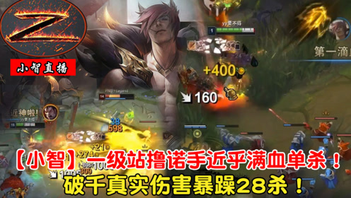 简介:小智:新英雄一级站撸诺手近乎满血单杀!破千真实伤害暴躁28杀!